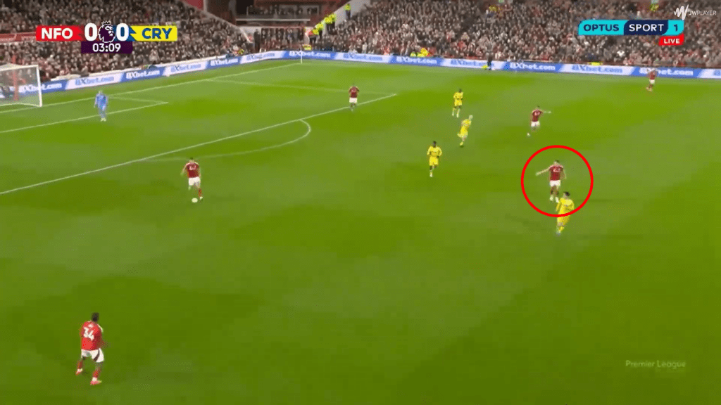 Yates shows this repeatedly – while running stats for this Premier League season aren’t publicly available, it is visually clear that Yates covers more distance than most Forest players.