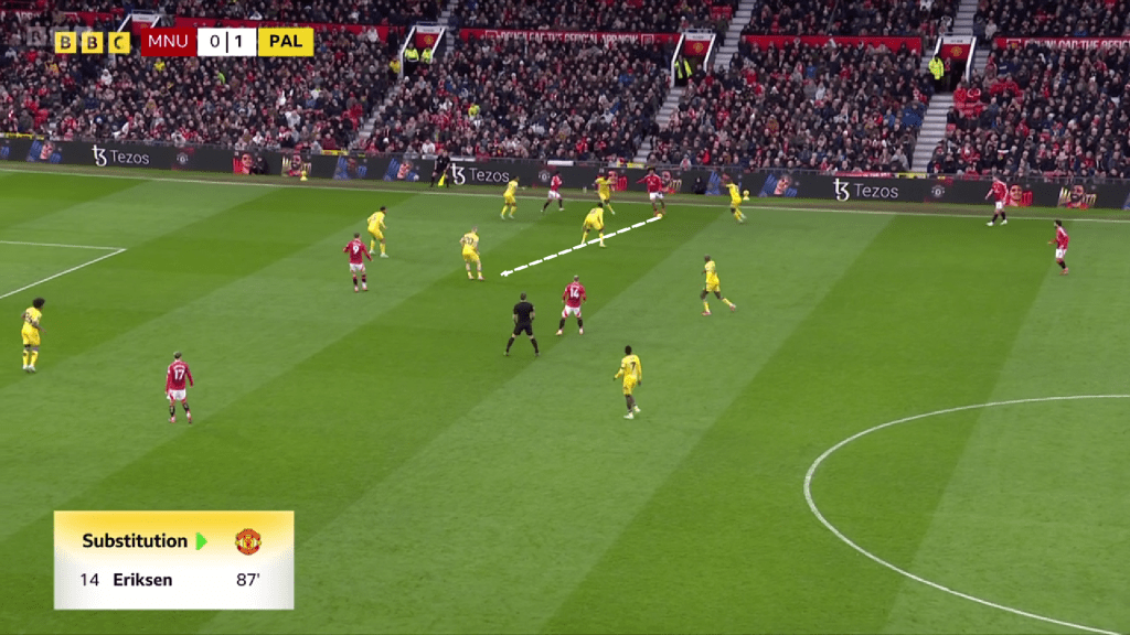 Mainoo leading the line left United without a physical presence high up the pitch. This played brilliantly into Palace’s hands.